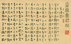 任仁发(1254-1327) 元画家、水利家。字子明,号月山道人,松江青龙镇(今属上海市青浦县)人。年十八,举乡贡。元兵南下,往见平章游显,署为宣慰使掾。以缮补大都(今北京市)水闸及疏浚有功,升都水少监。后黄河决口,仁发指挥抢救,率众筑堤,以固河防。晚年主持疏浚吴淞江工程,官至浙东道宣慰副使。擅画人物,尤长画马,自称学韩斡。亦工书,师法李邕。存世画迹有《二马》、《张果见明皇》等图。所著有《浙西水利议答录》十卷。