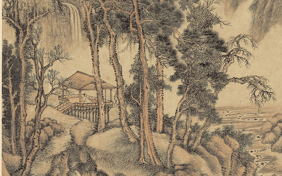 水阁幽人图 轴 清 王 翚 纸本设色 115cm×37.5cm 天津市艺术博物馆