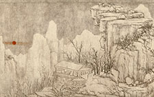 朱耷,即八大山人(1626—1705),明宁献王朱权的后裔,原名统銮,南昌人。明亡后削发为僧,字雪个。别号驴汉、人屋、刃庵、驴屋驴、人屋、个山、朱耷等。四位僧人画家中,八大山人是最“格色”的,他为人怪癖,艺也诡奇,时人认为他的画“人多不识,竟以魔视之”。此《山水册》足以代表朱耷的艺术风格。笔墨简括凝练,形象夸张,意境清冷。画中山水树木,形象寂寥无不带有画家的个人烙印和情感。