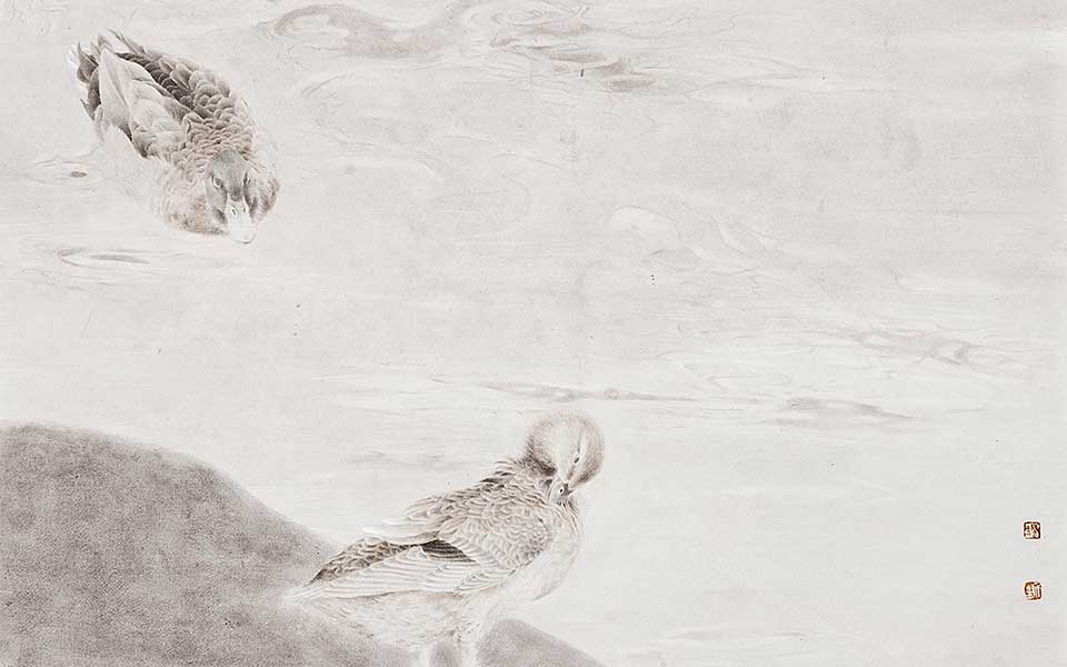 茶家小鸟(扇面) 汤文选 当代 27cm×54cm 1947 年