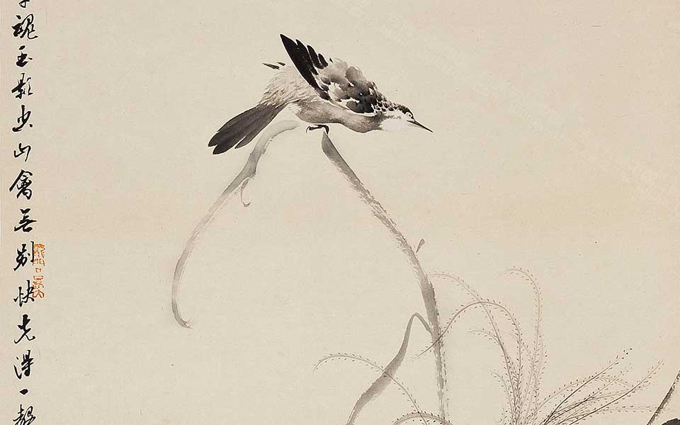 茶家小鸟(扇面) 汤文选 当代 27cm×54cm 1947 年