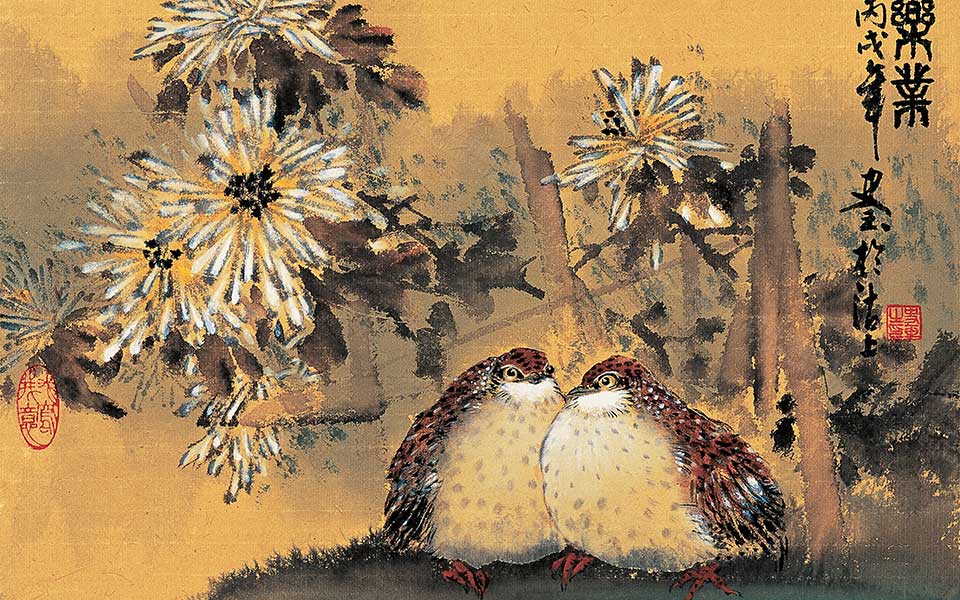 茶家小鸟(扇面) 汤文选 当代 27cm×54cm 1947 年