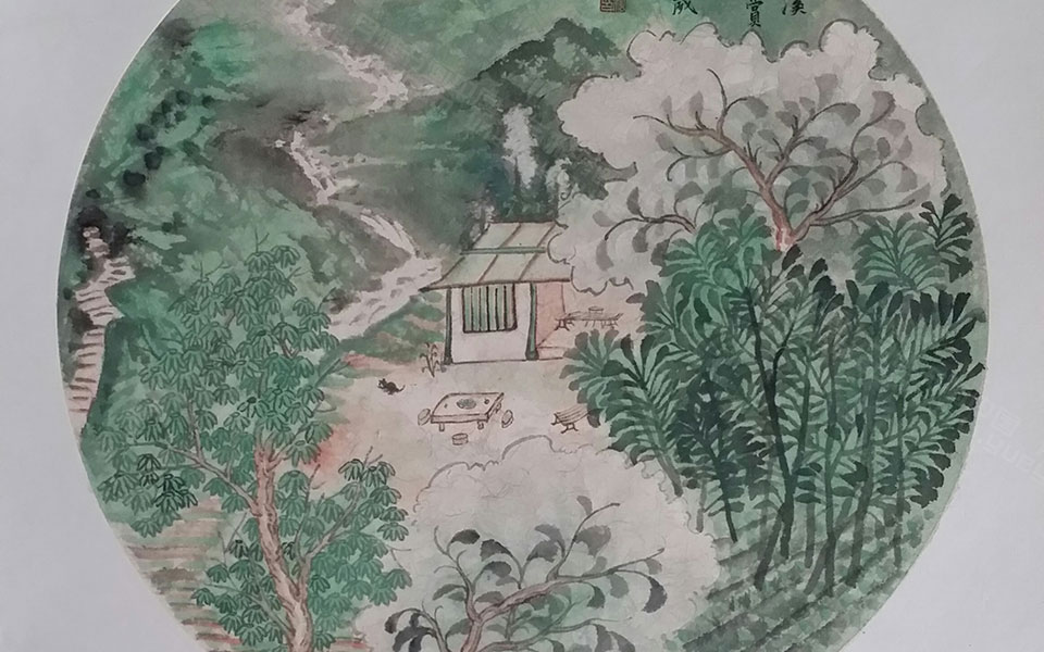 《田园心象》之《江边钓鱼图》 周松竹 当代 33X33cm 2014