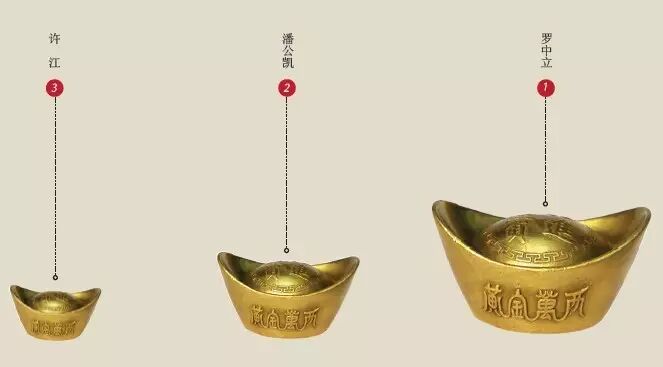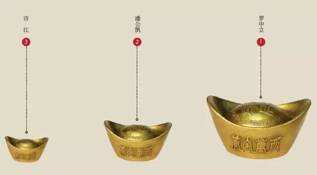 根据artprice公佈的“2012年全球拍卖额前500名艺术家排名”看,罗中立以1618万美元的成绩在三人中排名最高,潘公凯屈居次席,许江则更加的专注于艺术理论的研究,排名相对的靠后一些。