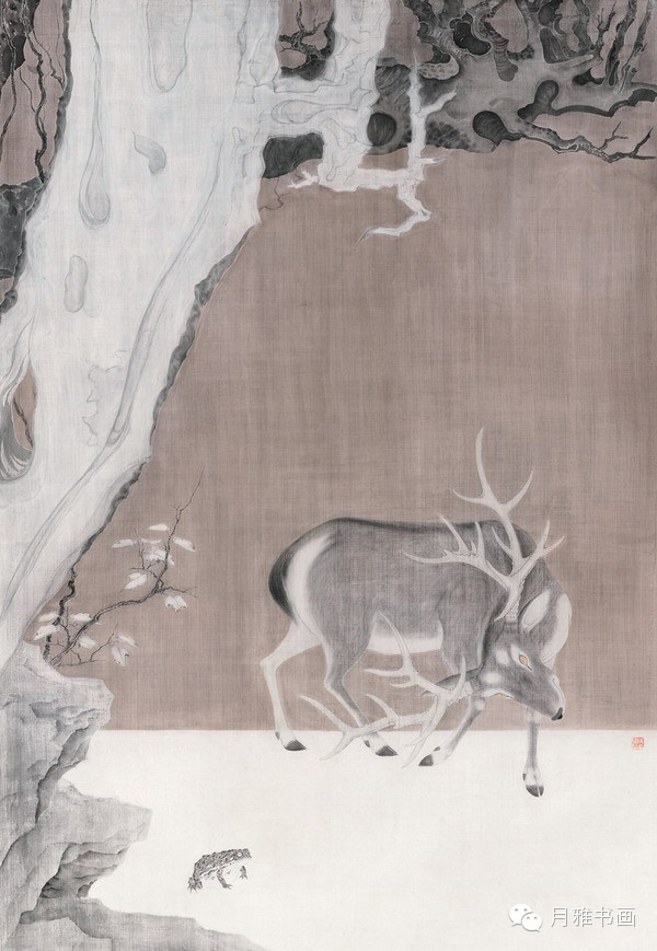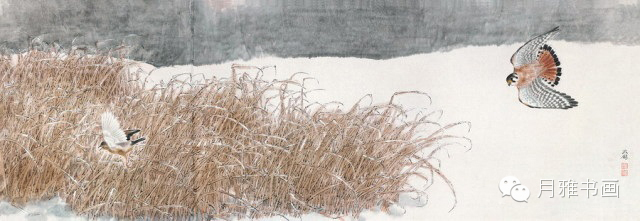 《晴雪鸷禽图》,70cm×199cm