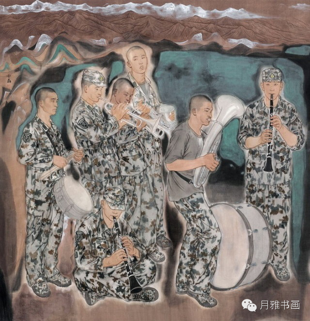 《戈壁滩上的军乐队》,186cm×181cm