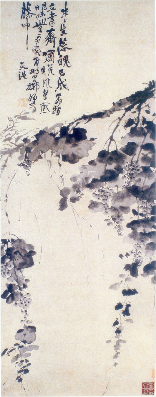 中国画的题跋按字数长短,大致可分为三类:长款、穷款和藏款。历代在画面上落长款的名家中不乏高手,他们不仅文采惊人,其书法更是了得。如明代徐渭画了一幅写意水墨葡萄图,画中题诗宣泄悲愤之情:“半生落魄已成翁,独坐闲斋啸晚风。笔底明珠无出卖,闲抛闲置野藤中。”近现代的吴昌硕、齐白石、黄宾虹、张大千等也都善于撰题长款。