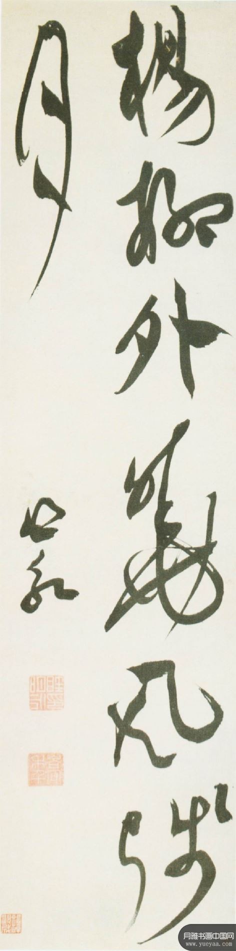 草书柳永词立轴(点击放大)纸本,纵113.5cm,横28.3cm,2行9字。北京故宫博物院藏