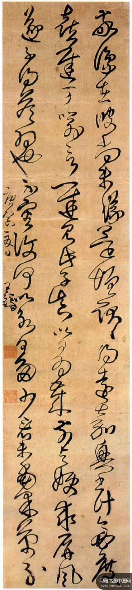 自署书于庚寅年(清顺治七年,1650年)。草书。绫本。凡三行,共66宇。纵240cm,横51cm。开封市博物馆藏。