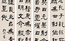 他是一位十分勤奋的书法家。他自己说:“余学书四十余年,溯源篆分。楷法则由北朝求篆分入真楷之绪。”何绍基早年由颜真卿,欧阳通入手,上追秦汉篆隶。他临写汉碑极为专精,《张迁碑》,《礼器碑》等竟临写了一百多遍,不求形似,全出己意。进而“草、篆、分、行熔为一炉,神龙变化,不可测已。”至今存临本仍然不少。中年潜心北碑,用异于常人的回腕法写出了个性极强的字。